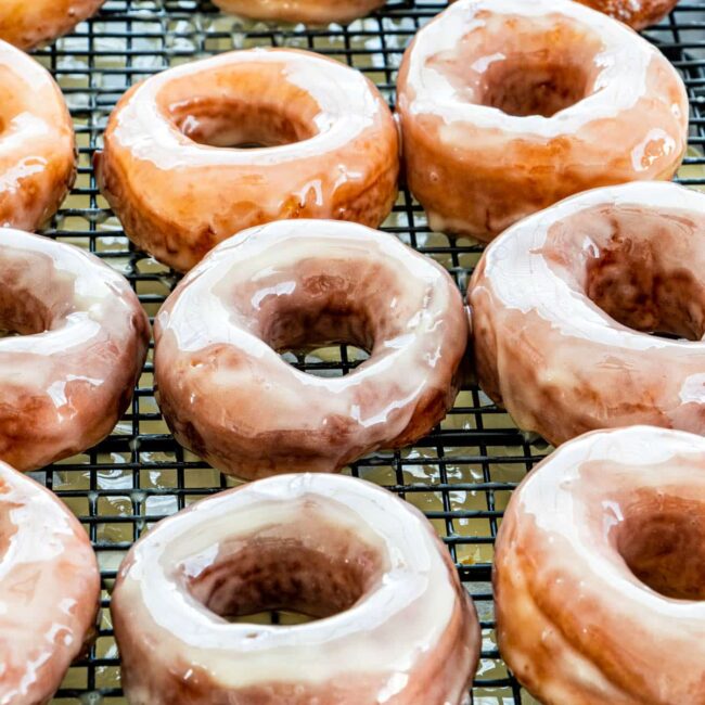 - Finish the donuts: Dip donuts into the glaze while still hot.