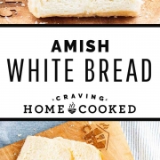 Amish White Bread is an easy, soft, slightly sweet loaf that slices easily without crumbling, making it ideal for sandwiches! Its velvet-like texture and semi sweet flavor make it a hit amongst kids and adults alike.