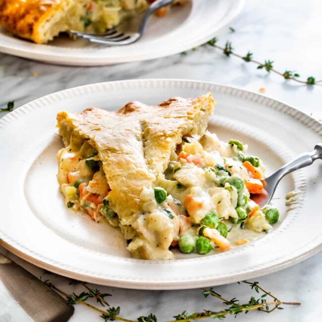 - Spices and herbs – all we need is a bit of salt and pepper. I love to add some thyme and parsley to my chicken pot pie.