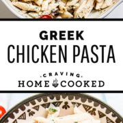 - Finish the greek chicken pasta: Garnish with remaining 1/2 cup of Feta and parsley. Serve!